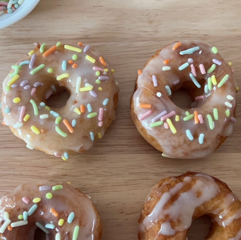 Finish the donuts with glaze by dipping or over the donut and some sprinkle over the glaze and ready to serve with hot or ice teas.
